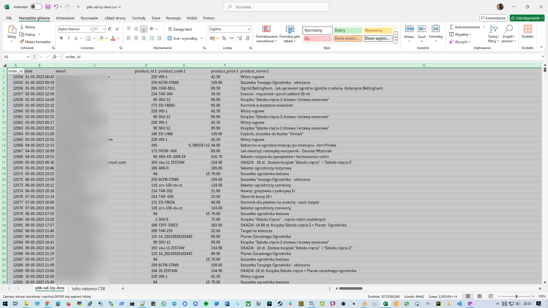 I już możemy np. sortować kolumny (wraz ze wszystkimi innymi, sortowanie działa na całym arkuszu a nie tylko 1 kolumnie). Mamy też bardzo przydatną opcję filtrowania, z której skorzystamy w tym wypadku.