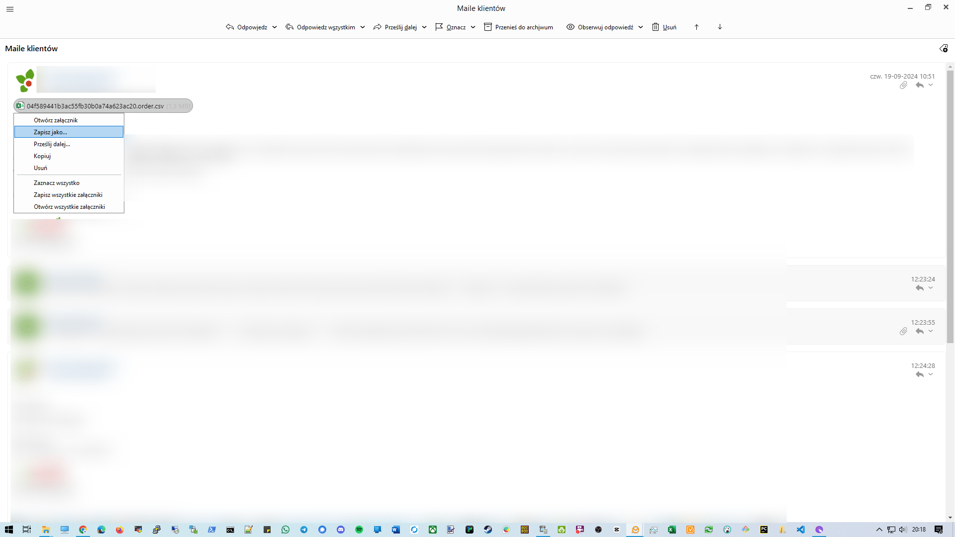 Zapisujemy plik i otwieramy w Excelu - polskie znaki powinny już być ok